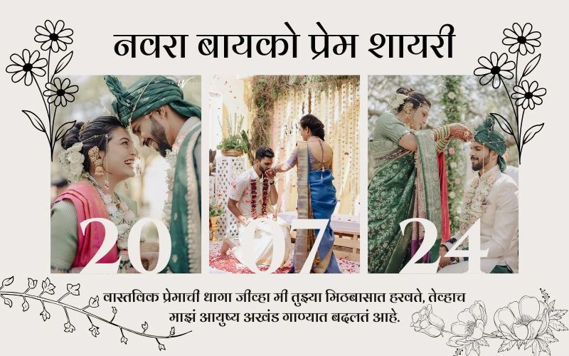 नमस्कार आणि स्वागत आहे Terrific Wishes वर! 🙏💖 आपल्या प्रेमाला शब्दांचा रंग देण्यासाठी आम्ही येथे आहोत. जेव्हा आपल्या मनातील भावना व्यक्त करायच्या असतात, तेव्हा नवरा बायको प्रेम शायरी हा सर्वोत्तम मार्ग आहे. 🌹 प्रत्येक जोडप्याच्या प्रेमकथेत काही खास क्षण असतात, काही गोड बोलणे असते, आणि काही अव्यक्त भावना असतात – आणि त्या सगळ्यांना आवाज देण्यासाठी नवरा बायको प्रेम शायरी हे परफेक्ट माध्यम आहे. आमच्या या ब्लॉगमध्ये आपल्याला मिळणार आहेत प्रेमळ, रोमँटिक, आणि मनाला स्पर्श करणाऱ्या शायरी जे आपल्या जीवनसाथीला विशेष वाटू शकतील. 💑